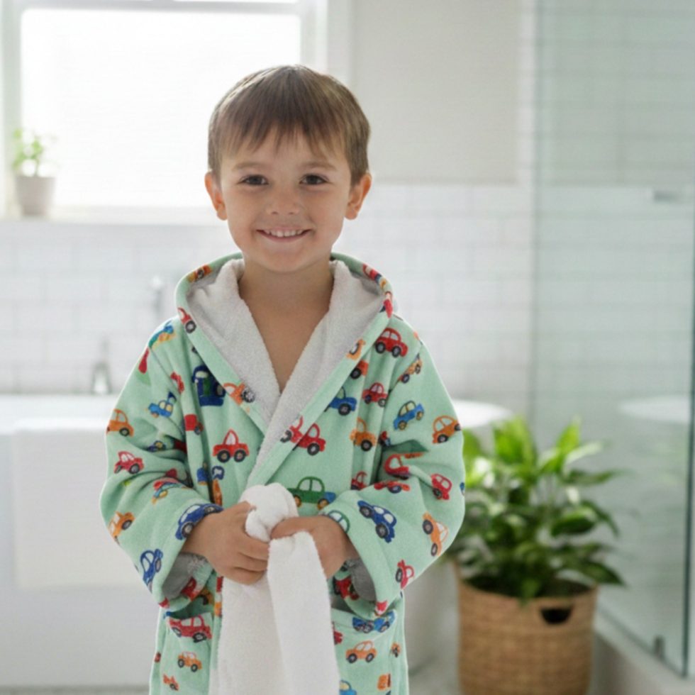 Детски халат “Коли” – двуслоен комфорт – бързо попиване и пухкава мекота в един халат!