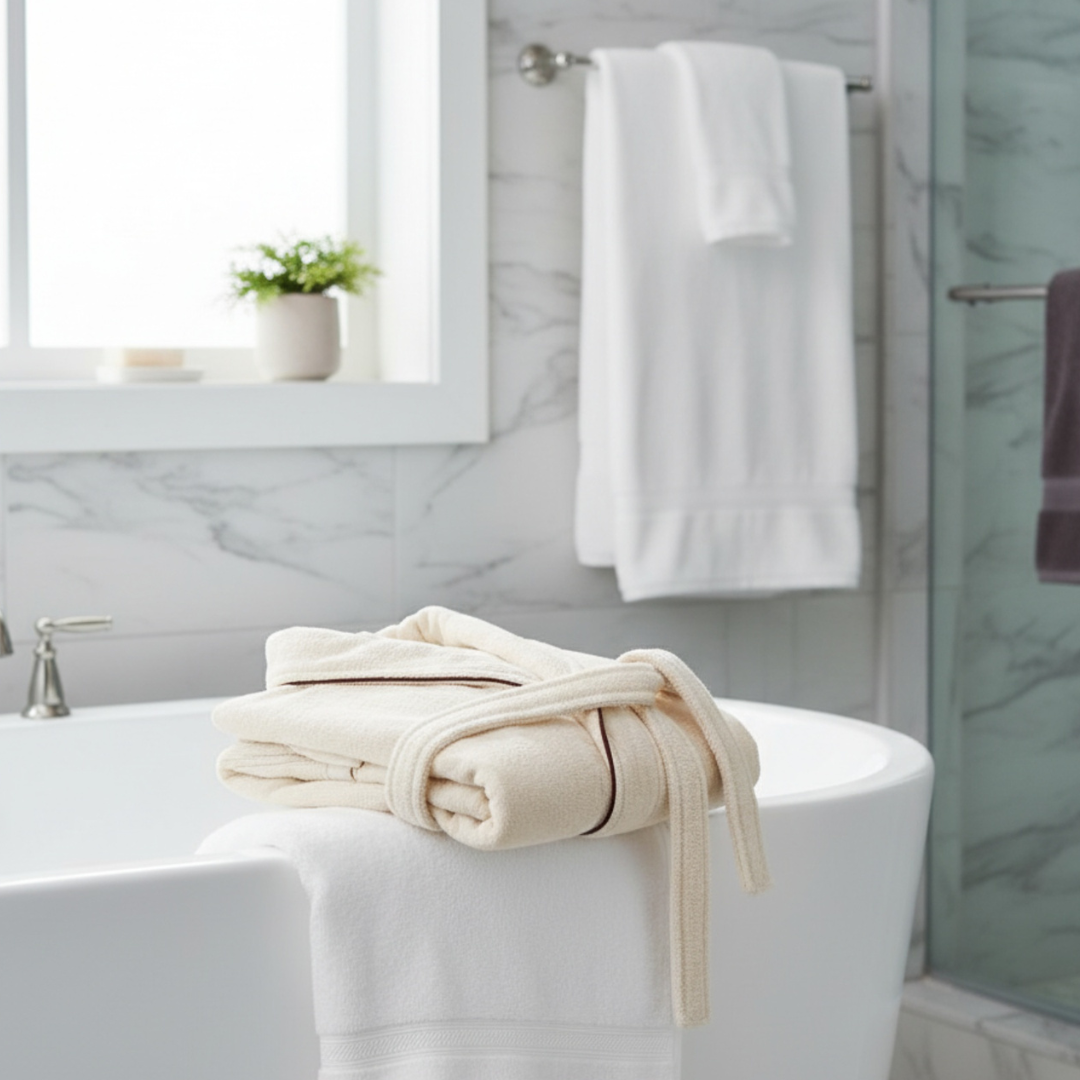 Топлина и Уют: Обгръща тялото и превръща всеки момент след баня в малък ритуал на спокойствие.