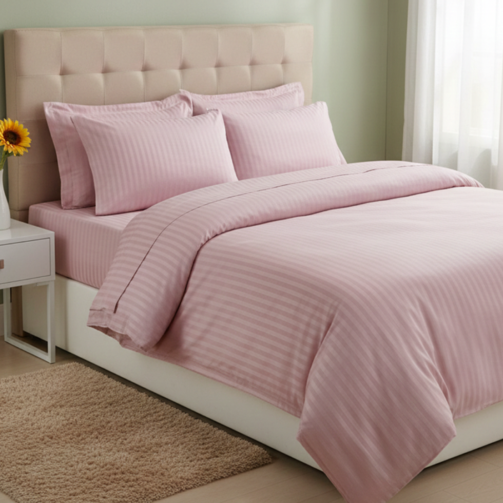 Спален комплект Памучен сатен – Розово Райе